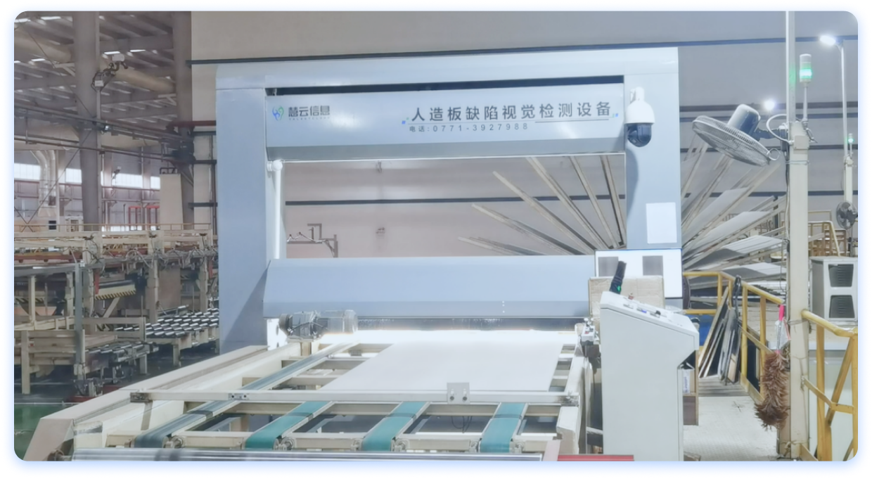 人造板缺陷視覺檢測設(shè)備是慧云信息基于人工智能、大數(shù)據(jù)技術(shù)自主研發(fā)的一款質(zhì)量檢測設(shè)備,設(shè)備可在 2s 以內(nèi)完成人造板缺陷的提取、判斷、反饋、處理全過程,同時可完成人造板的成像處理、缺陷識別、降板分級。