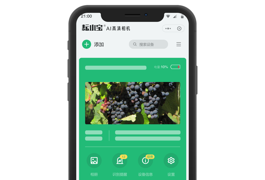 耘小寶 AI 高清相機可定時拍攝農(nóng)作物照片,自動對照片進行智能識別,當診斷出病蟲害或異常生理狀態(tài)時,耘小寶相機可及時給用戶發(fā)送預警消息,并提供相應的植保方案。